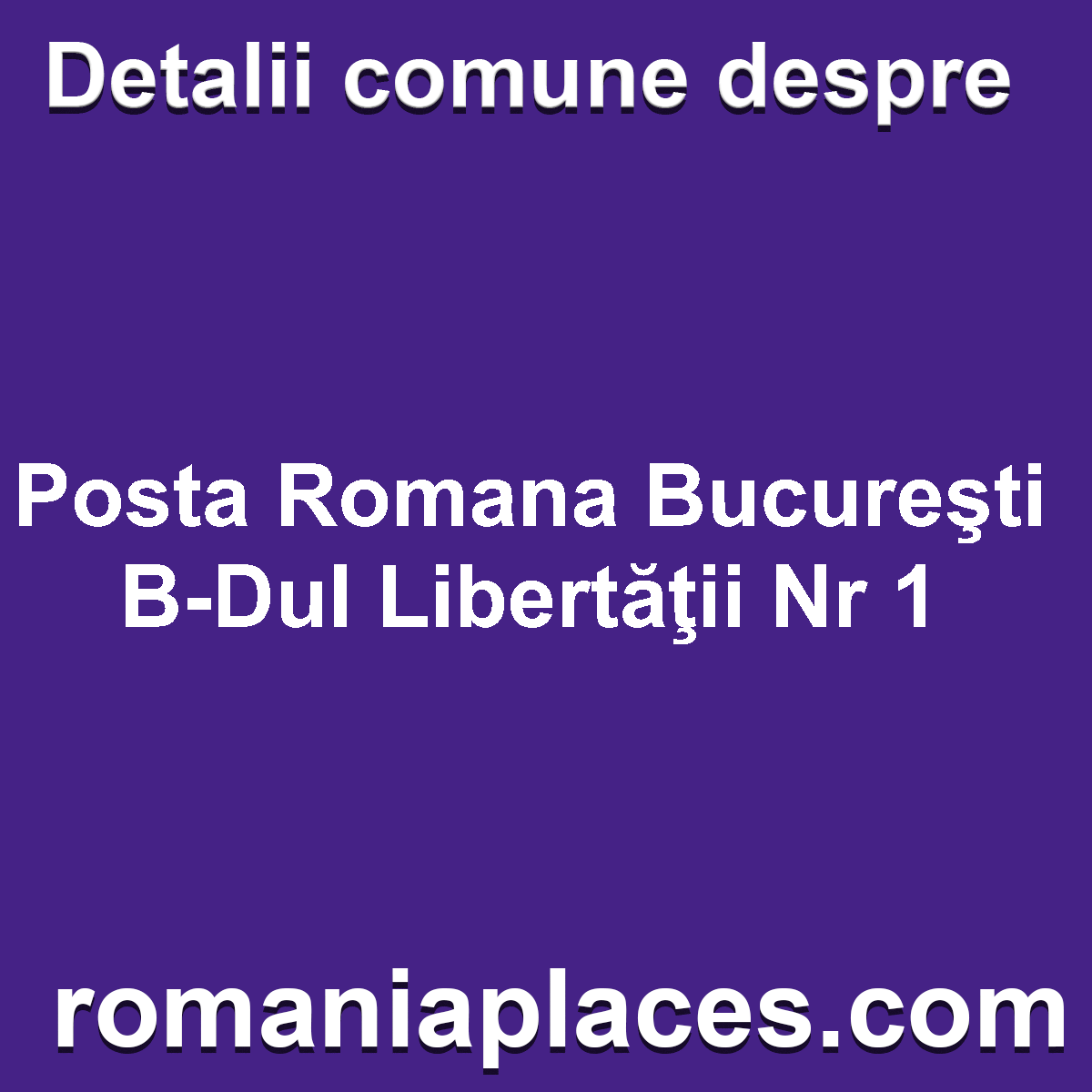Informații generale despre Posta Romana Bucureşti B-Dul Libertăţii Nr 1 În categorie Poșta Română