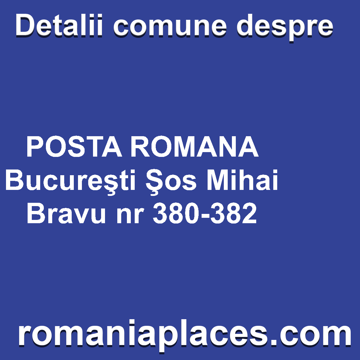 Informații generale despre POSTA ROMANA Bucureşti Şos Mihai Bravu nr 380-382 În categorie Poșta Română