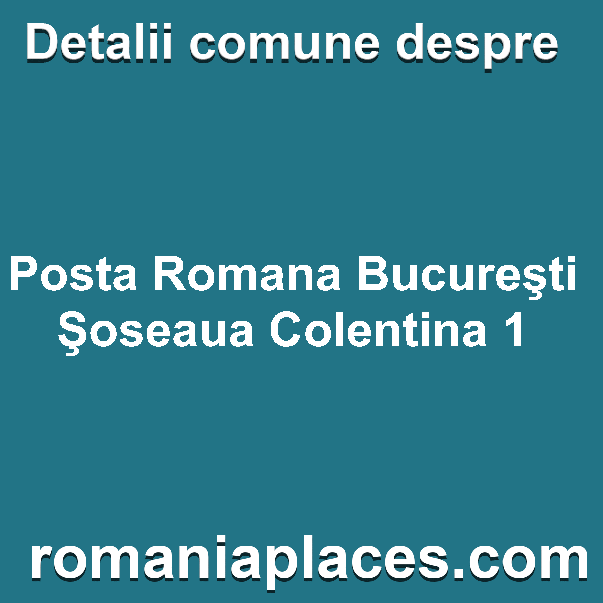 Informații generale despre Posta Romana Bucureşti Şoseaua Colentina 1 În categorie Poșta Română