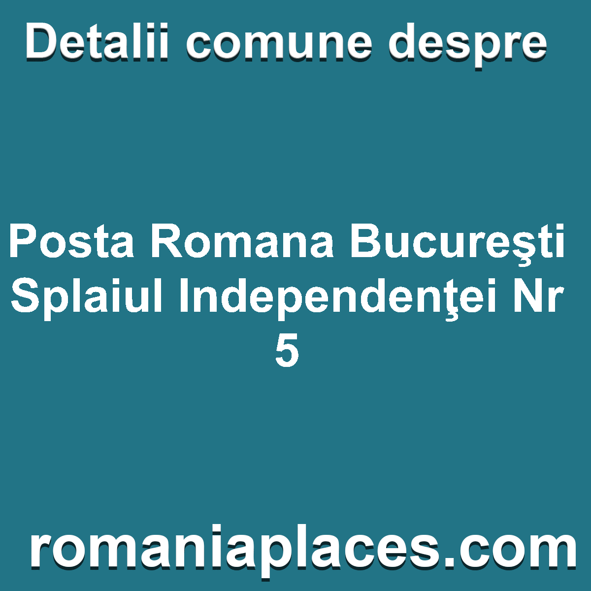 Informații generale despre Posta Romana Bucureşti Splaiul Independenţei Nr 5 În categorie Poșta Română